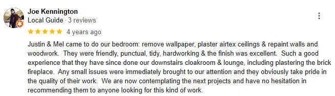 I have recently moved from Leighton Buzzard, where I successfully provided plastering, painting, and decorating services since 2007.